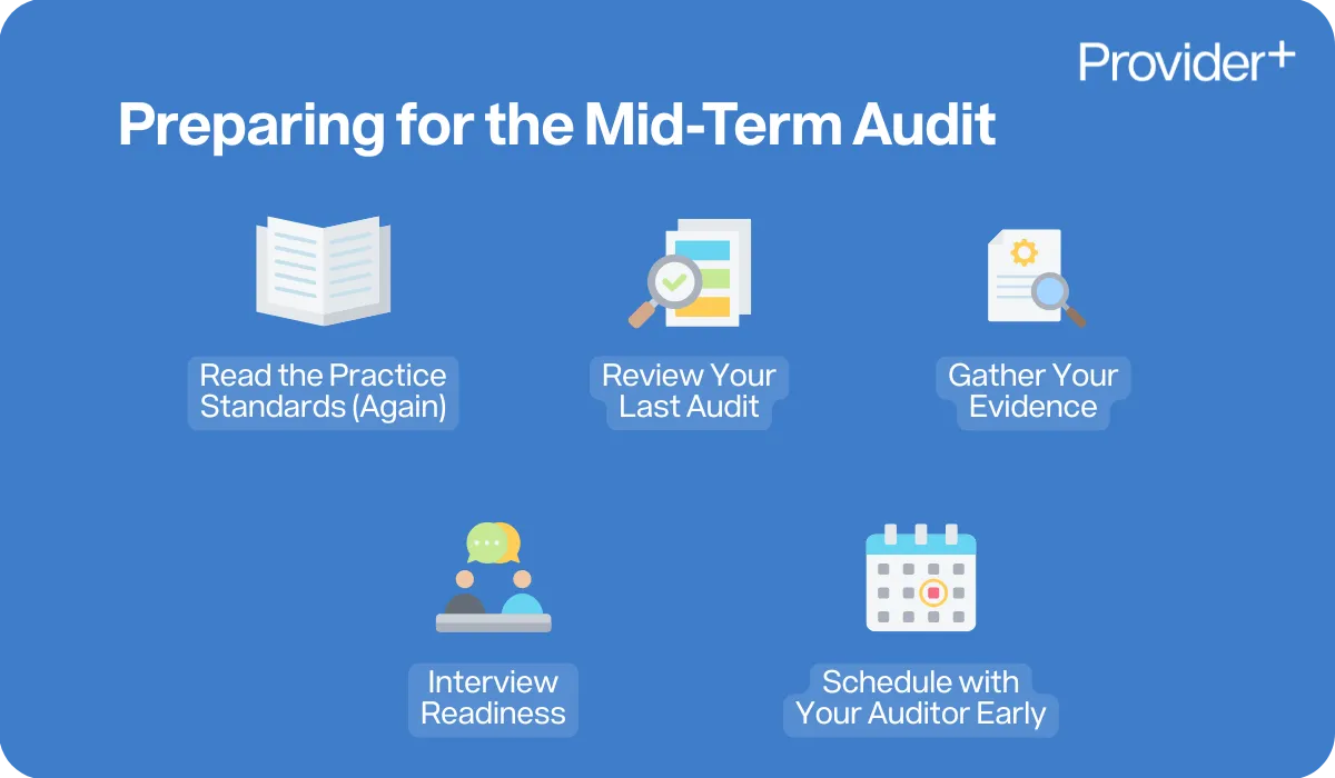 The mid-term audit is a mandatory review required by the NDIS Quality and Safeguards Commission for providers who are delivering certified registration groups.