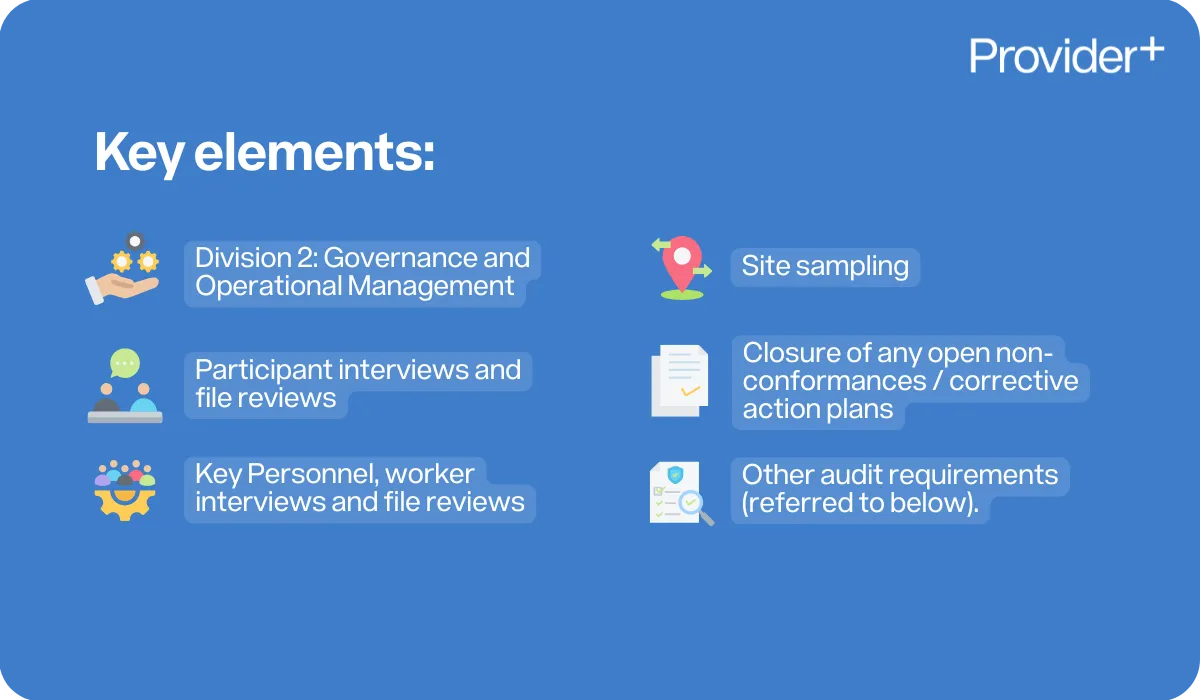 This means if you deliver higher-risk or more complex supports (like personal care, behaviour support, or group accommodation), you will be required to undergo a mid-term audit.