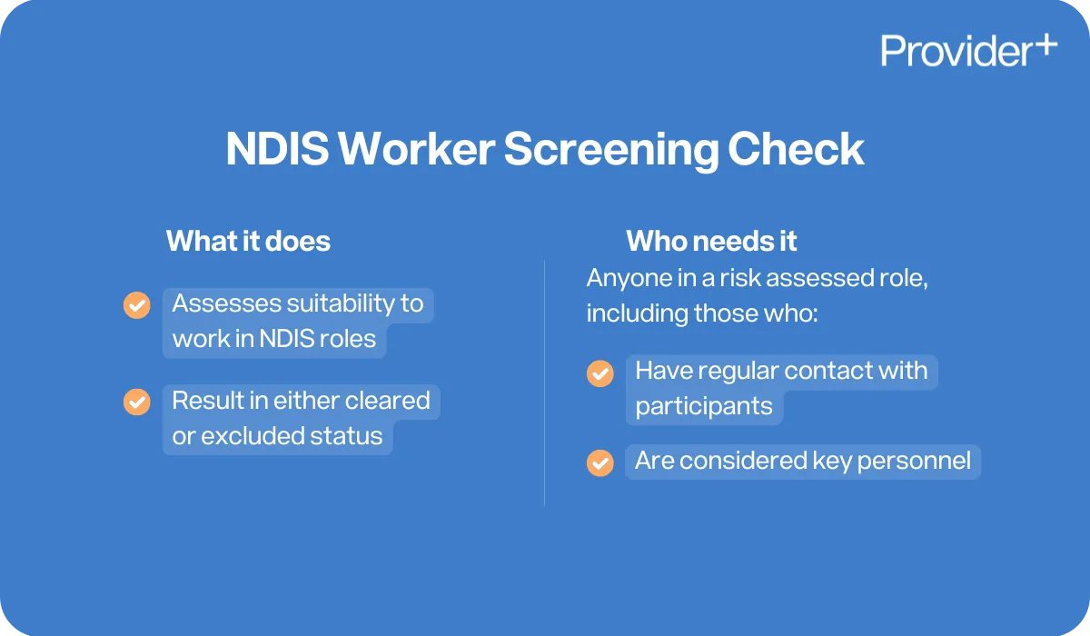 NDIS Worker Screening Checks are a key part of keeping participants safe, protecting them from potential harm and creating a safe, respectful and trustworthy environment. At the end of the day, it's about giving participants and their families confidence in the people theyβre relying on for support.