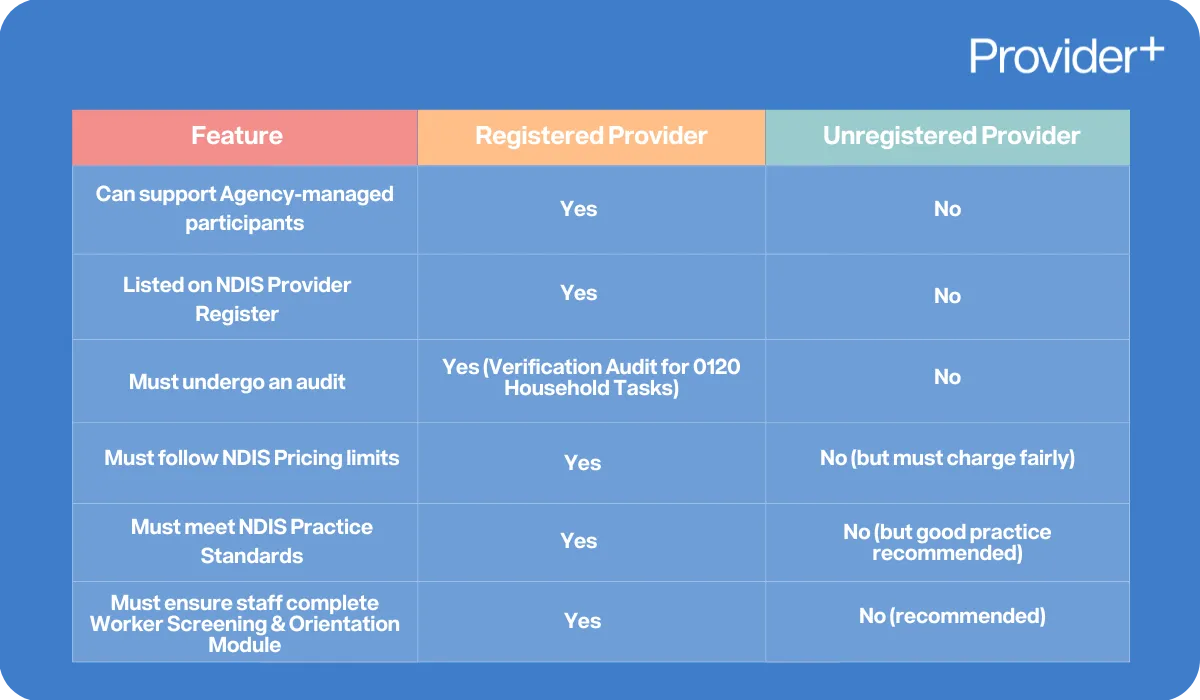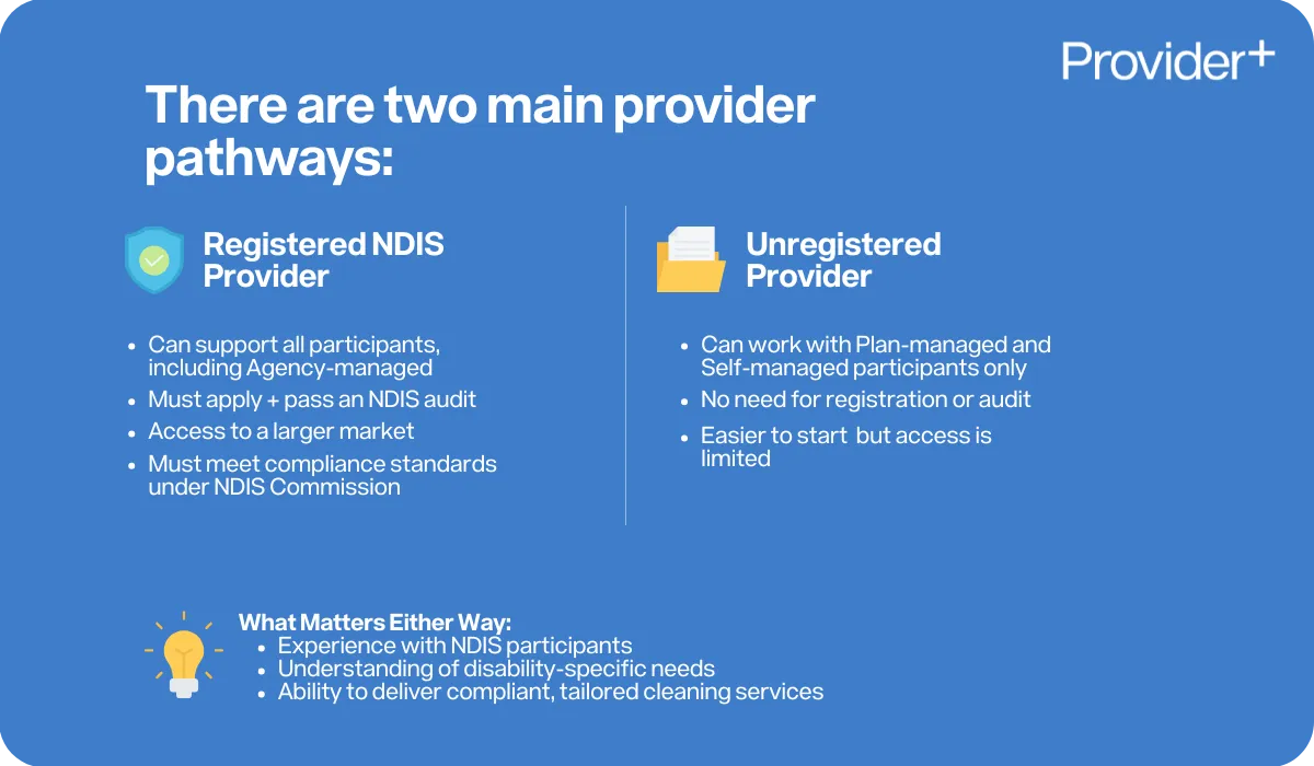 Registration is not mandatory for all NDIS cleaners, but it may be the right choice depending on your goals. Here are the key differences: