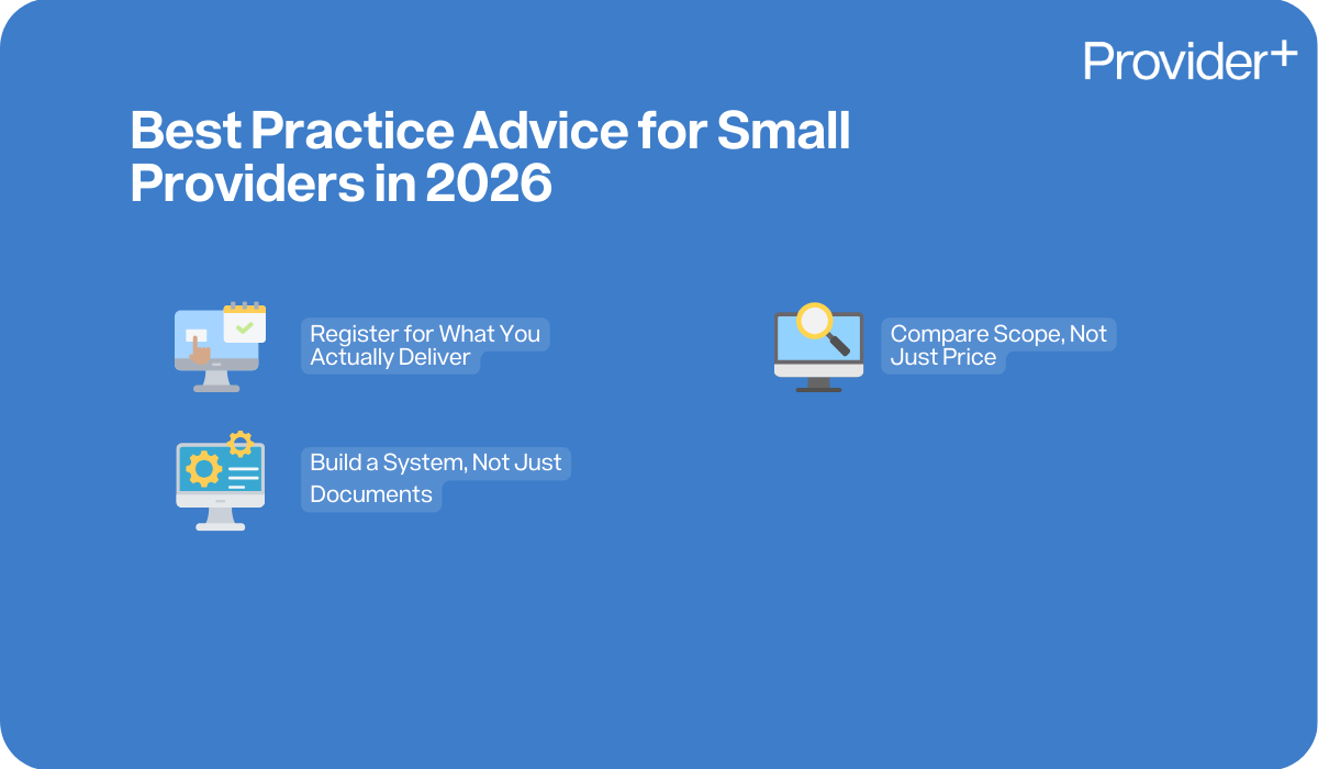 - For small providers, most “cost blowouts” come from choosing high-risk registration groups, underestimating what certification requires, and building compliance systems after applying instead of before the audit.
