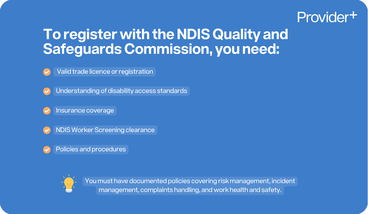 To register with the NDIS Quality and Safeguards Commission, you need: