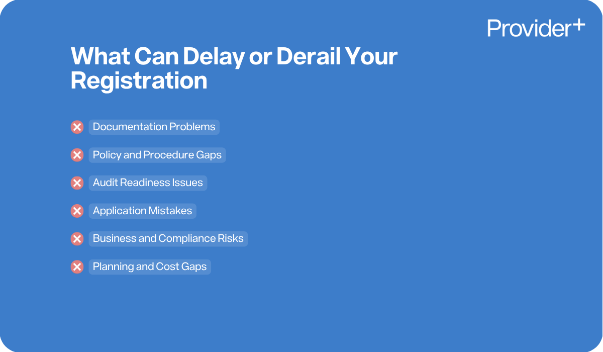 Preparing documentation, developing policies, and getting worker screening clearances all take time. Many providers underestimate this and miss their target registration dates.
