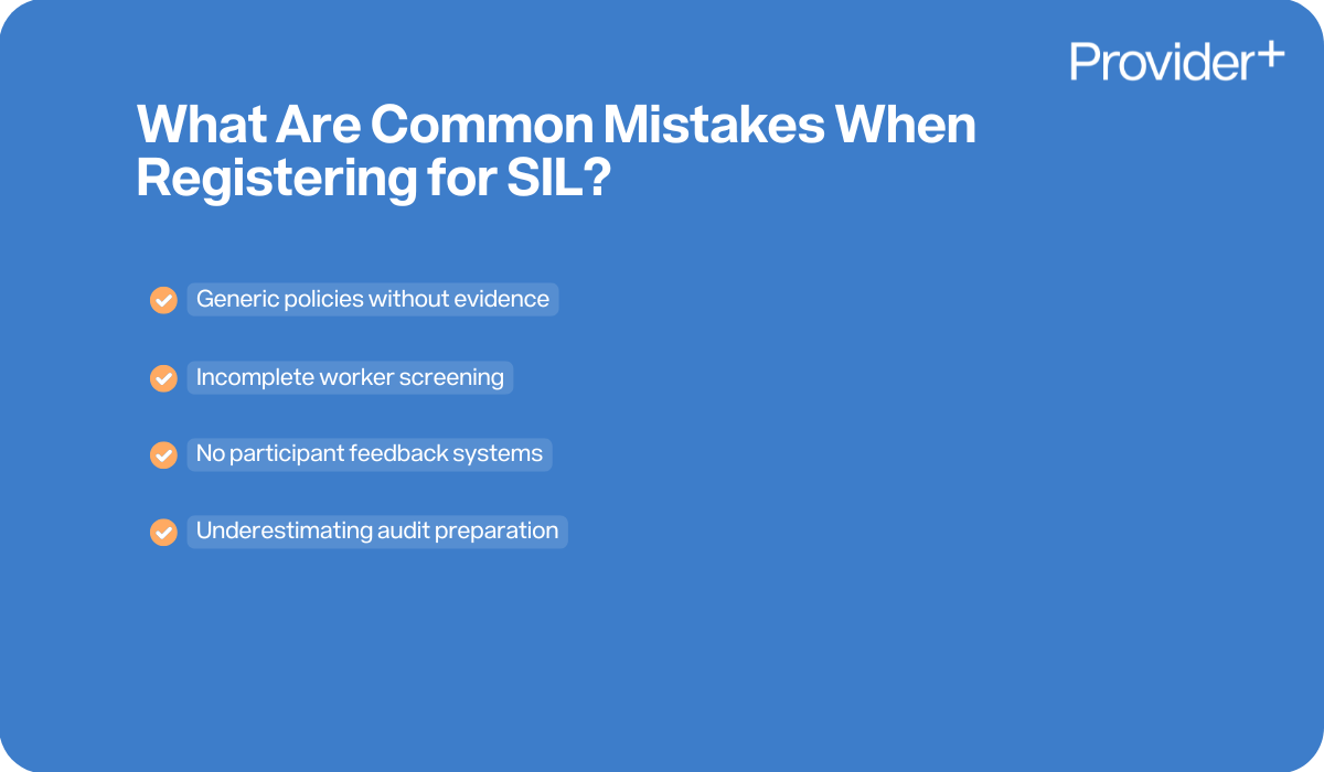 Incomplete worker screening: Every person delivering SIL supports needs a valid NDIS Worker Screening Check. Missing even one worker can result in audit non-conformity.