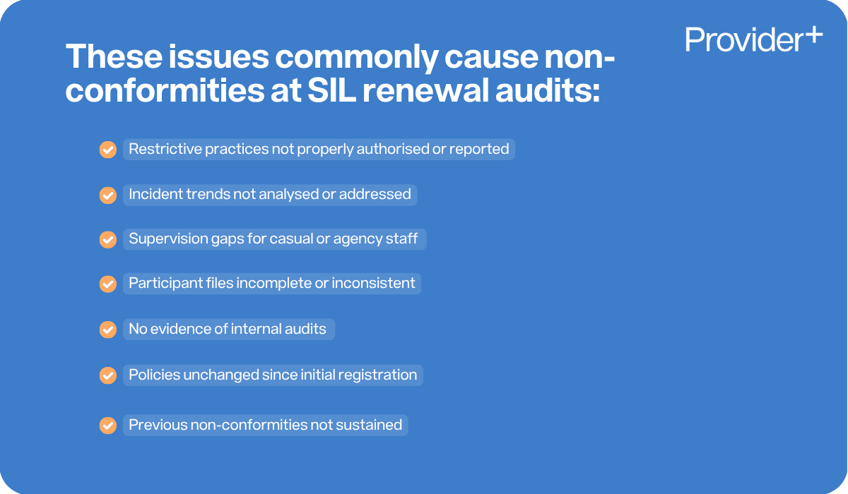 Auditors are seeing SIL gaps firsthand. As unregistered providers go through certification for the first time, auditors are assessing SIL services that have operated without oversight. The gaps they identify in incident management, restrictive practices, and workforce governance inform their expectations across the sector.